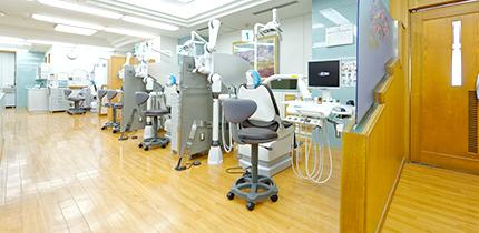 広々としたオープンタイプの診療スペースに18台の診療台を設置しています。